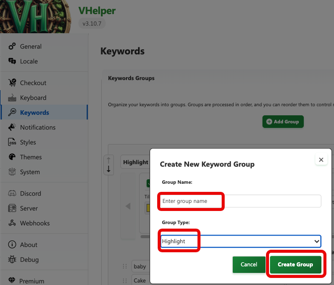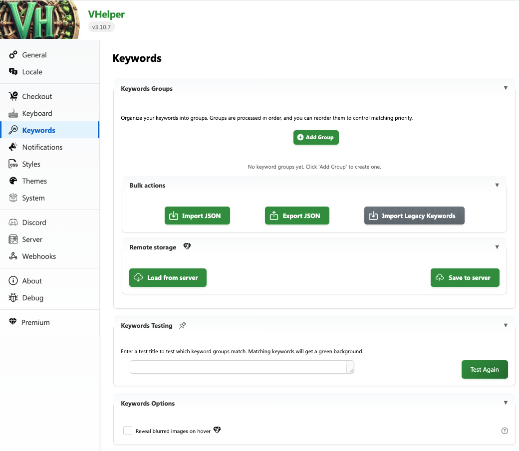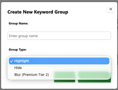 There are three types of keyword groups: Highlight, Hide and Blur (premium feature).