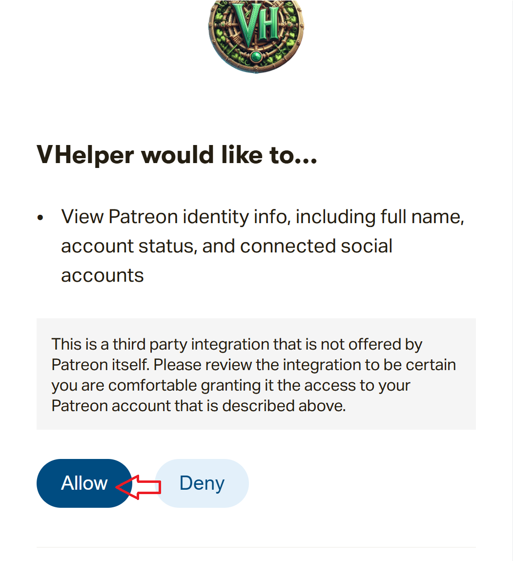Step 3: Accept to link your Patreon's account to V-Helper
