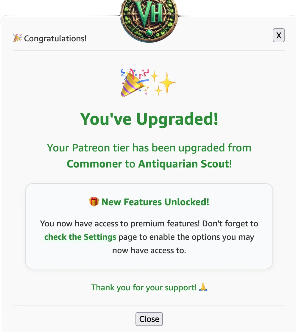 You decided to support V-Helper and purchased a one of the paid subscription tier: thank you for your support!